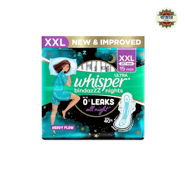 Whisper Bindazzz Nights XXL Sanitary Pads – Pack of 15